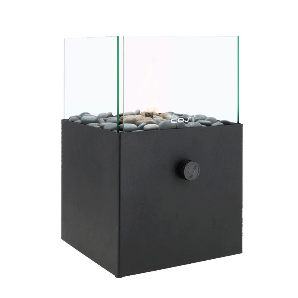 Bring warmth and atmosphere to any room with the Cosiscoop Square Black – a modern gas lantern with a sleek, square design. Made of robust metal and finished with transparent glass and stylish pebbles, this lantern is a real eye-catcher on your table, balcony or terrace.