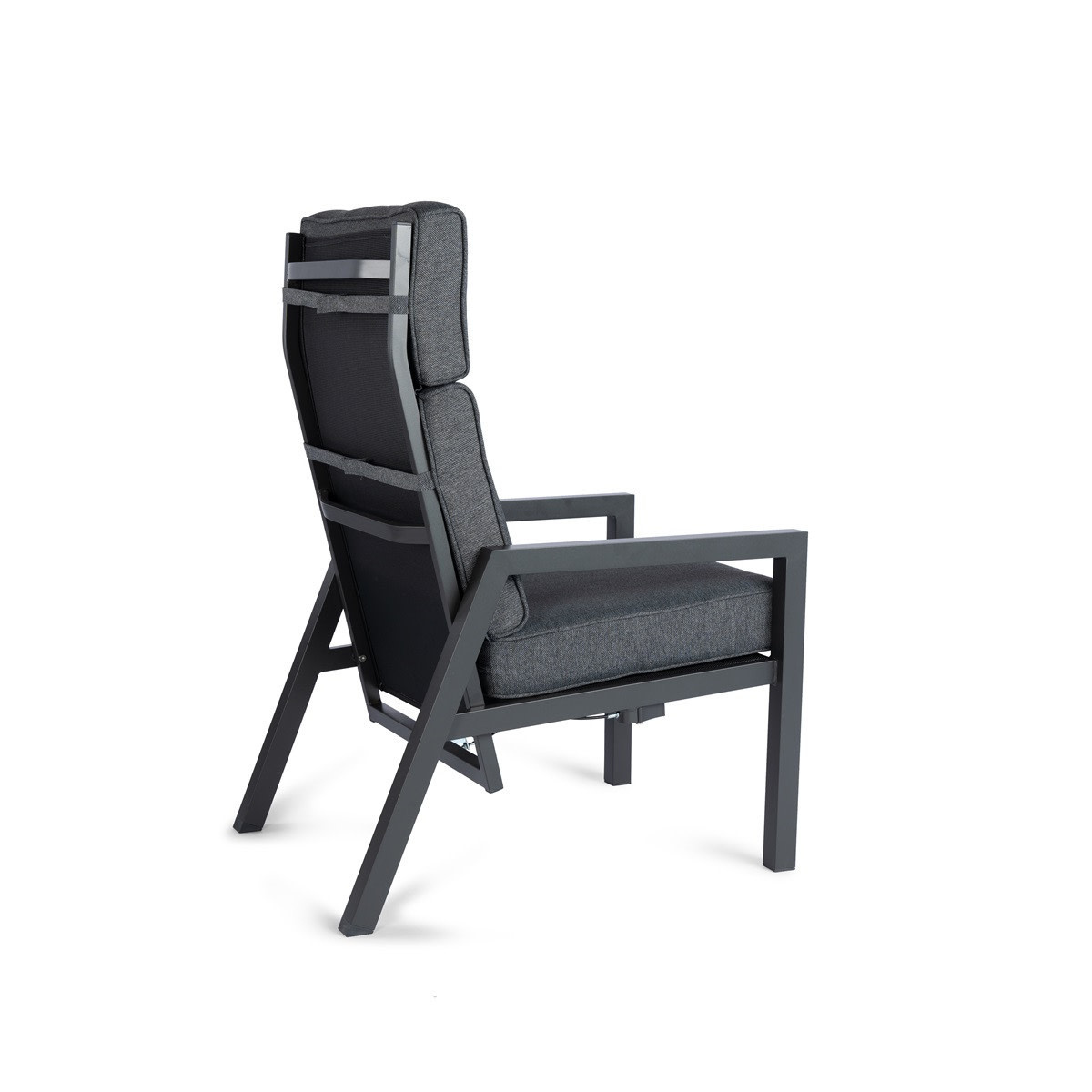 De Campo 5-delige loungeset combineert comfort en stijl in een eigentijds design, vervaardigd uit duurzame materialen. Deze set bestaat uit 2 verstelbare stoelen met Swiss Fabric, 2 hockers/voetenbankjes en een vierkant bijzettafeltje met keramisch blad. Het hoogwaardige Swiss Fabric zorgt voor een luxueuze, weerbestendige afwerking, terwijl het keramische tafelblad zowel stijlvol als onderhoudsvriendelijk is.